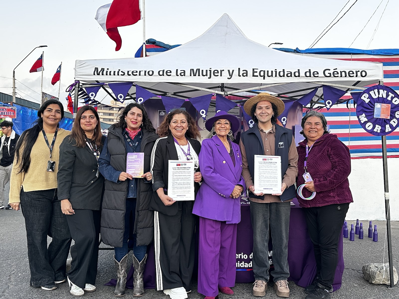En el marco de las Ramadas al pie del Morro de Arica, la directora regional del SernamEG, Camila Roberts Azócar y la seremi (s) de la Mujer y la Equidad de Género, María Isabel Cid Figueroa, reforzaron en el Punto Morado el llamado a prevenir la violencia de género y la promoción de espacios seguros durante estas Fiestas Patrias.