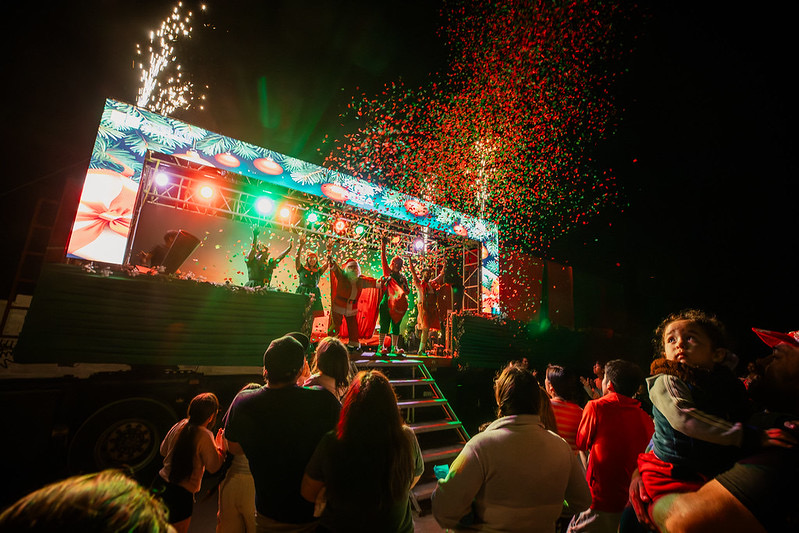El carro navideño tuvo su primera parada en Azapa, donde los niños de esos sectores recibieron un camión que traía un show muy completo de tornillo el payaso, un coro navideño, regalos para los pequeños, dulces para todos y un cierre brillante con luces y música, dejando huella por donde pasara.